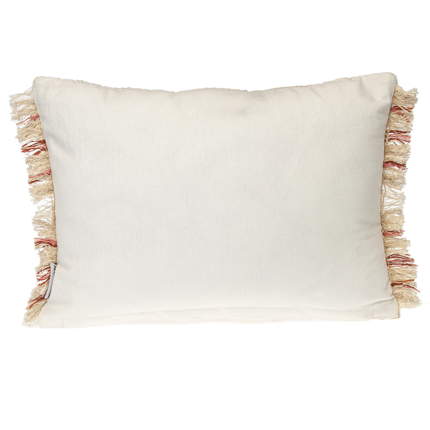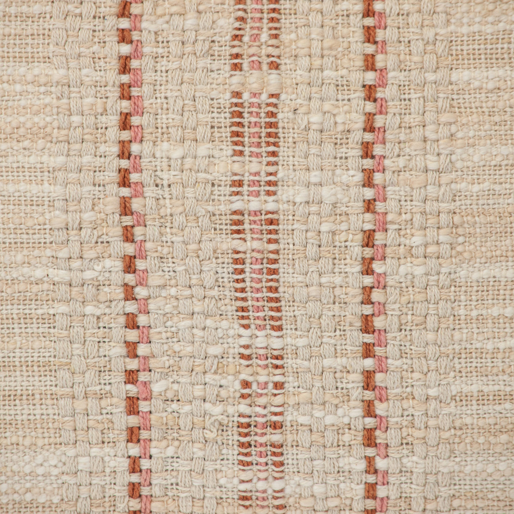 beige and pink striped cotton throw pillow with fringe. This beige and pink colored decorative pillow is made